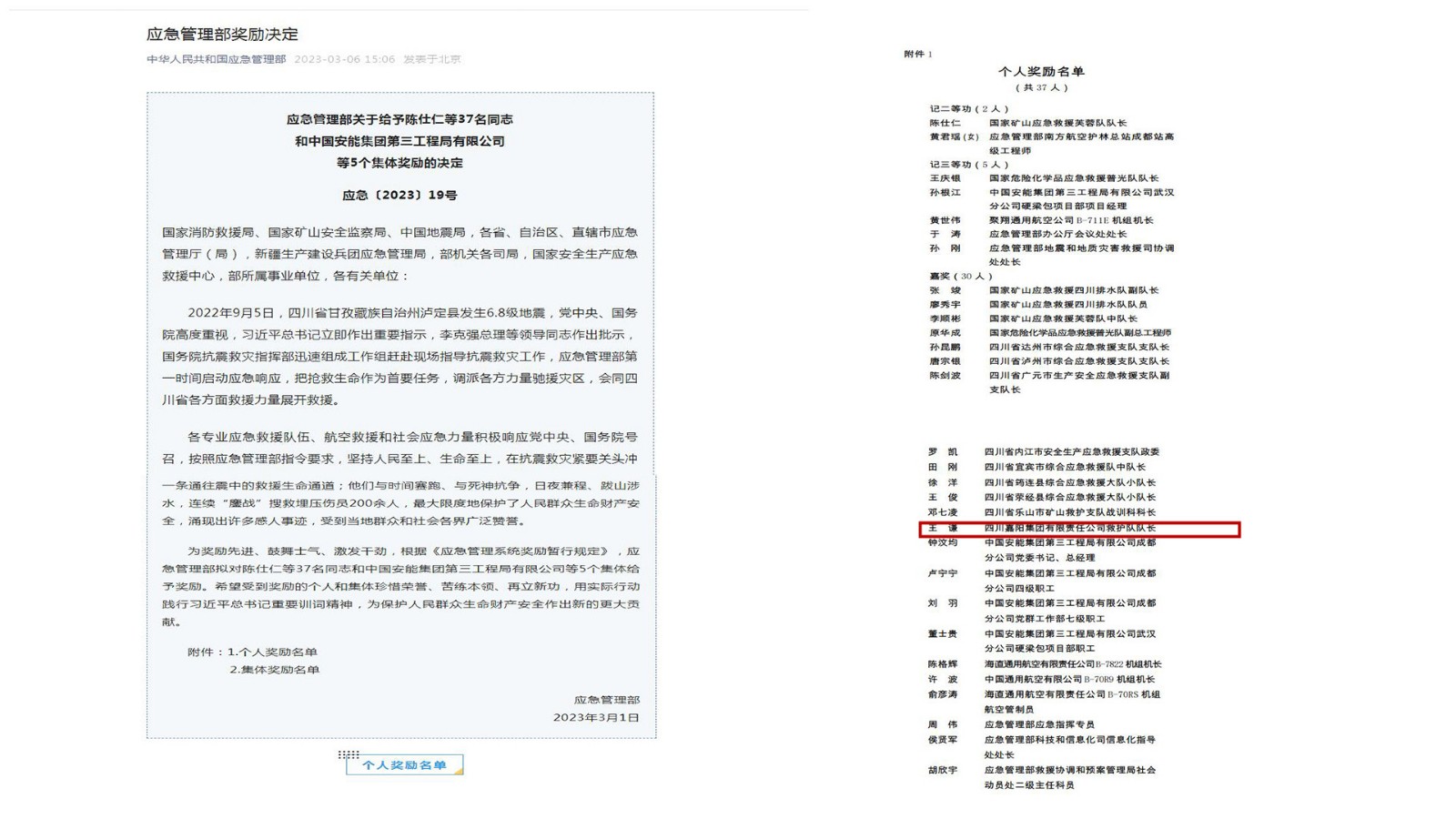 近日,应急管理部[2023]19号文件下发,对泸定抗震救灾表现突出的个人和集体进行奖励,Uwin电竞,点燃电竞激情,竞出非凡精彩!矿山救护队队长王谦榜上有名。