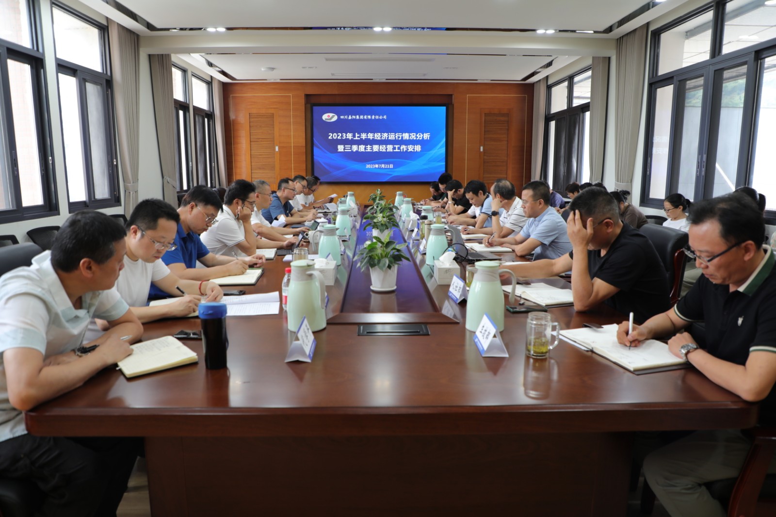 副总经理金大钧传达了川投集团上半年经济运行分析会主要内容及会议精神。他对公司上半年经济运行基本情况进行了分析,虽然营业收入、利润总额实现双过半,但是成本费用占营业收入比重、全员劳动生产生产率、研发投入强度等5个集团考核指标还有差距。上半年,煤炭主业效益严重下滑、旅游主业亏损同比增加、福溪粉煤灰公司效益大幅下降、机电分公司亏损超预期、部分项目投资完成有所滞后、部分单位“三公经费”超预算。三季度,各单位要找差距、补短板、强弱项,严格落实本单位生产经营相关办法,努力增产增收,防范货款回收风险,确保全年完成目标任务。