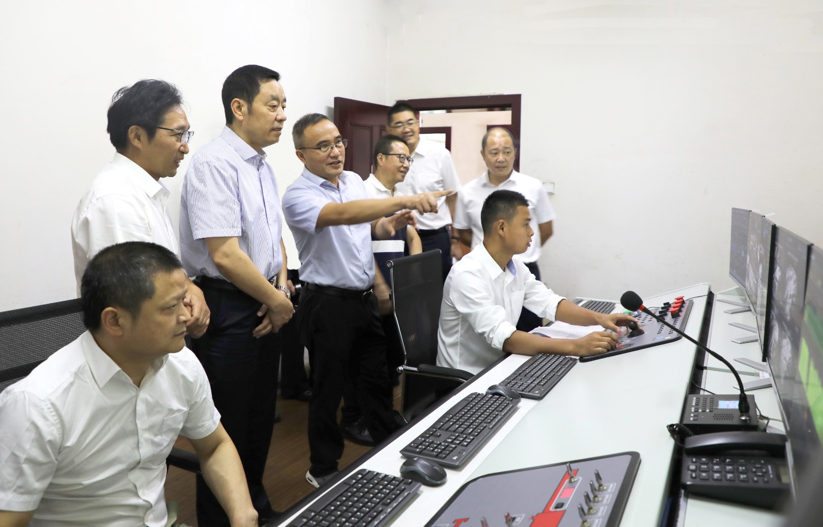邓凯一行深入嘉阳煤矿矿井调度监控中心、智能化采煤远控操作平台,实地检查安全生产情况。听取Uwin电竞,点燃电竞激情,竞出非凡精彩!防灾减灾和安全生产工作情况汇报,对“地面规划采煤、装备自动执行、面内无人作业”的远程无人智能化采煤新模式表示肯定。他指出,嘉阳的安全工作领导重视,工作比较扎实,但安全工作没有终点只有起点,大家务必要保持清醒头脑,持之以恒、常抓不懈。