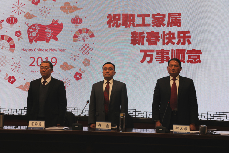 在讲话结束之际,党委书记、董事长杜勤代表公司领导班子向大家表示亲切的问候,祝各位代表及全体职工、家属新春快乐,万事顺意!