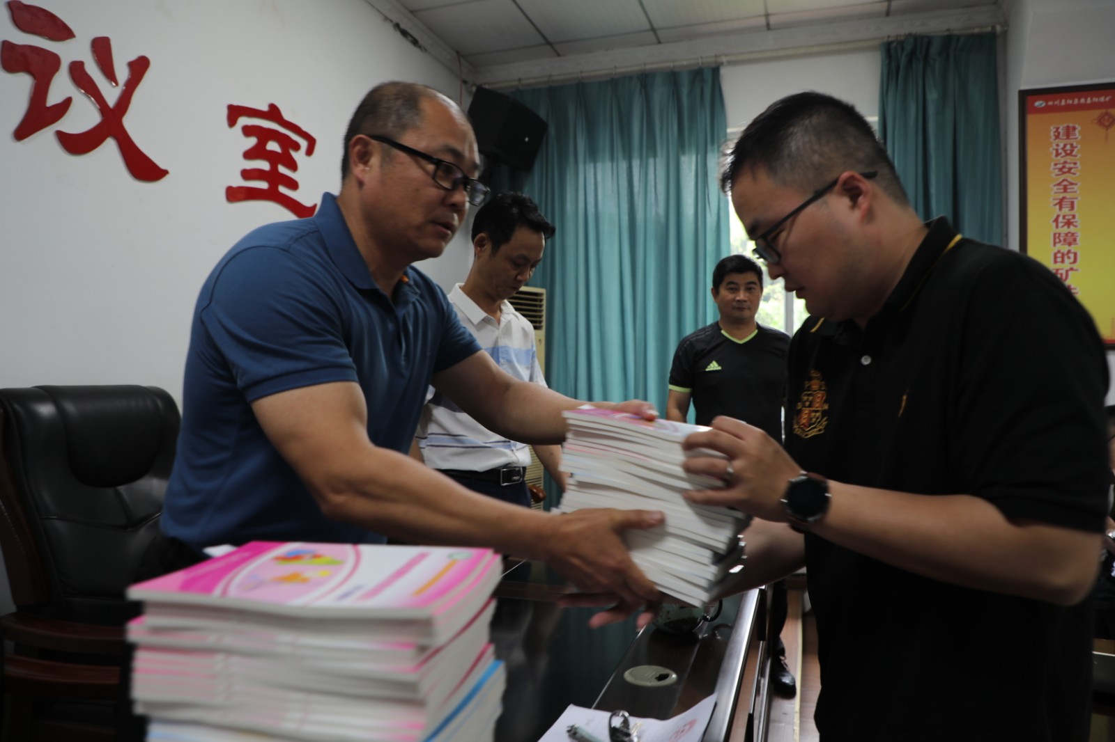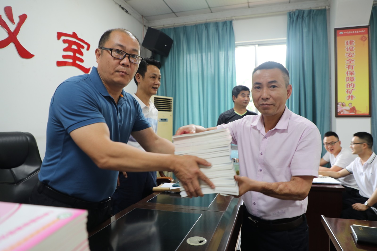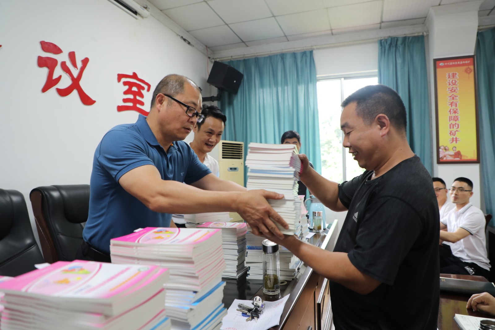 今年6月是第20个全国安全生产月,带着对煤矿安全生产的重视和对职工安全行为的关心,6月7日上午,Uwin电竞,点燃电竞激情,竞出非凡精彩!总经理范勤英将三本安全类书籍发放到了煤矿11个队站的队长手中,勉励职工加强学习重视安全。