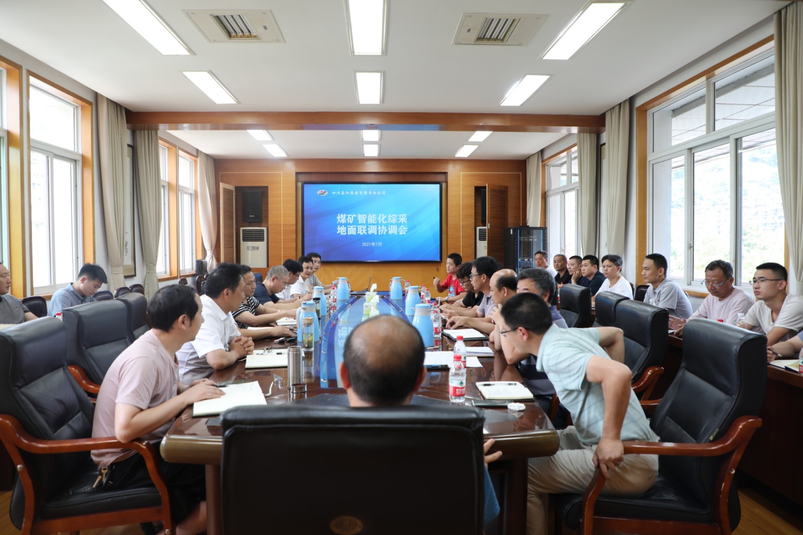 7月27日,Uwin电竞,点燃电竞激情,竞出非凡精彩!召开智能化综采地面联调协调会,总经理、智能化综采项目领导小组组长范勤英,副总经理、副组长王维洪、詹本远,总经理助理丰雄龙,嘉阳煤矿矿长陈文兵,公司机电主任工程师、智能办主任刘爱明等出席协调会,智能化综采安装工作相关责任人、厂家技术人员、物供司相关人员以及公司智能化综采项目技术服务团队相关人员参加会议。