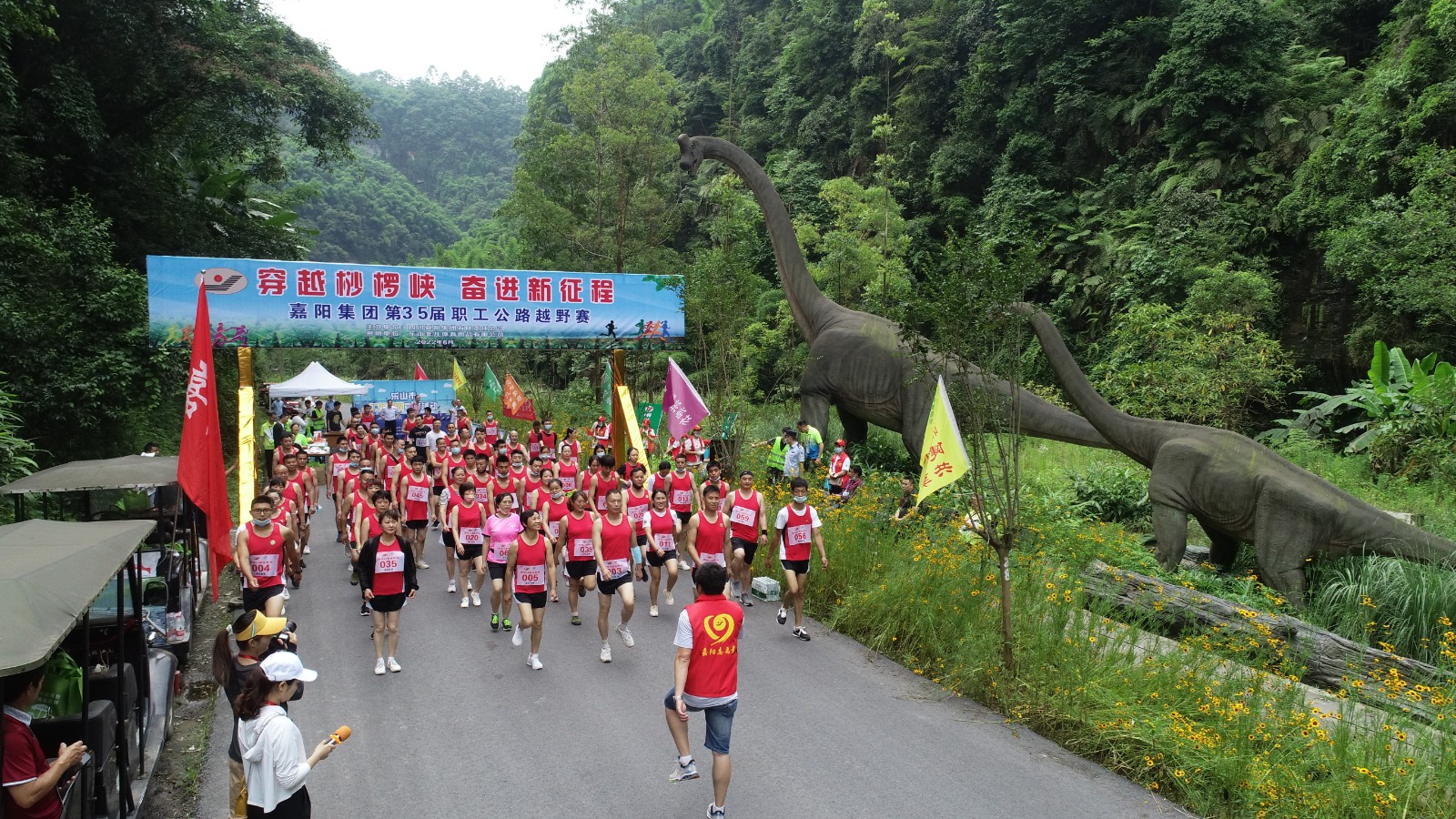比赛线路全程5公里,男女两个组别共70余名选手参赛。9点50分,一声发令枪响,参赛选手冲出起跑线,奋力奔跑,以顺河桥为起跑点,穿越桫椤谷,途经白岩腔、大湾,行进侏罗纪公园入口中转折返,沿途风景秀美,桫椤林立,溪水潺潺,恐龙嬉戏……选手们一边领略着嘉阳·桫椤湖景区的美景,一边尽情享受着奔跑的乐趣。各单位组织的志愿者也不遗余力地为比赛提供温馨服务、加油助威,他们用最美的笑脸、最热情的服务给比赛增添了一道靓丽的风景线。