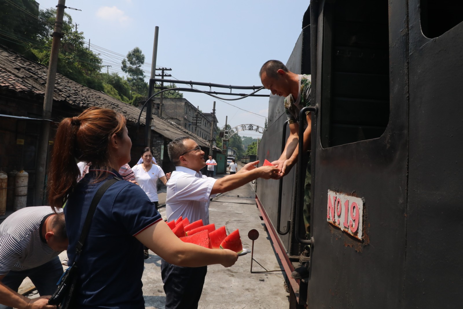 7月26日下午,党委书记、董事长杜勤,党委副书记、总经理范勤英,党委副书记、工会主席谢建国带领机关第三党支部党员到川投峨旅小火车检修车间、桫椤湖景区看望慰问高温天气坚守岗位的职工,在炎炎夏日给他们送上清凉送去关爱。