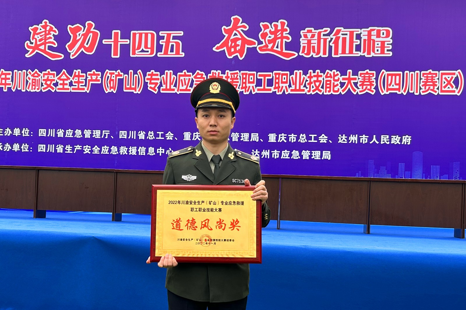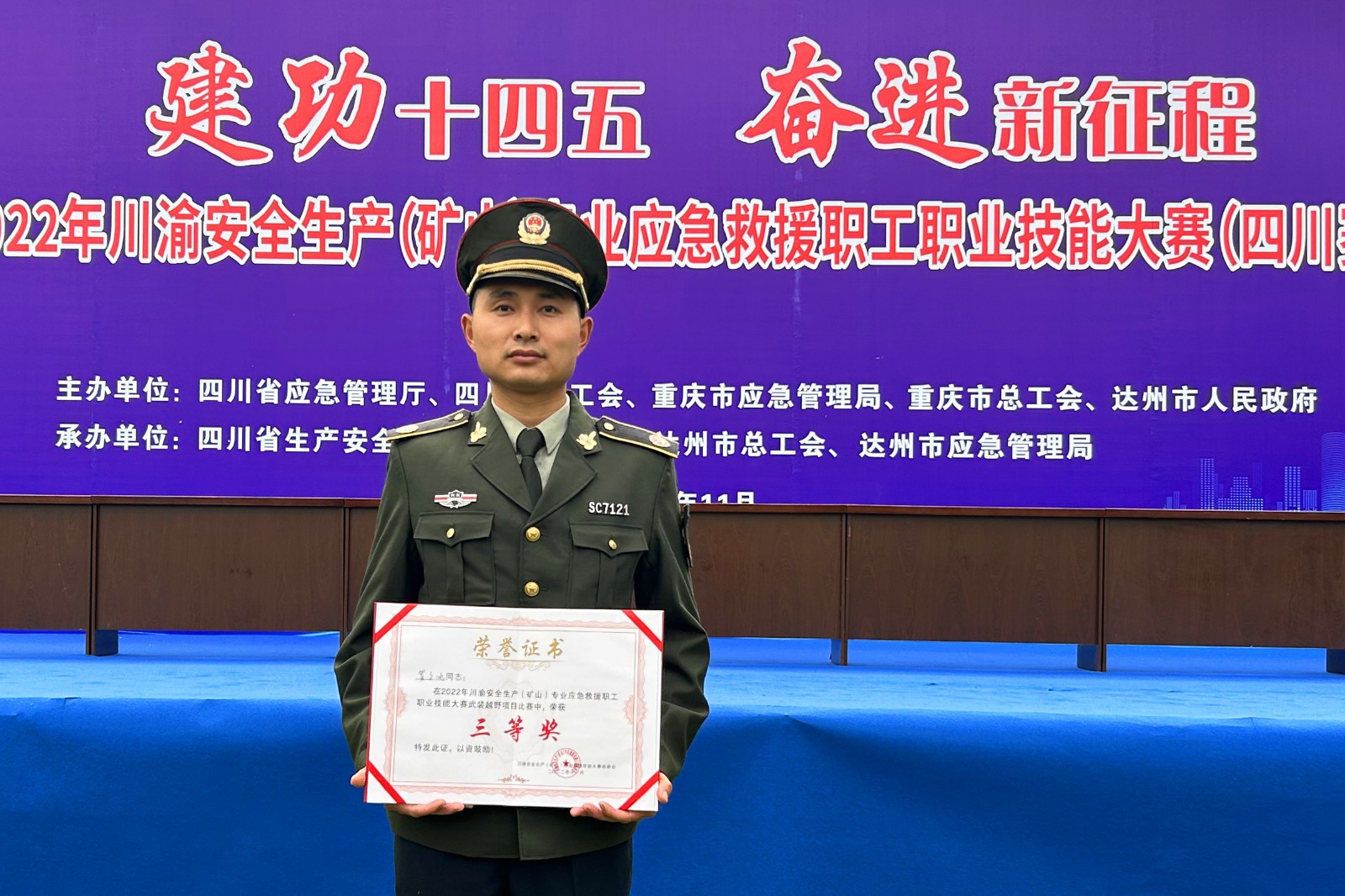 11月23日至24日,川渝安全生产(矿山)专业应急救援职工职业技能大赛在四川省达州市举行,Uwin电竞,点燃电竞激情,竞出非凡精彩!矿山救护队参赛队员贺文冰荣获武装越野项目三等奖。