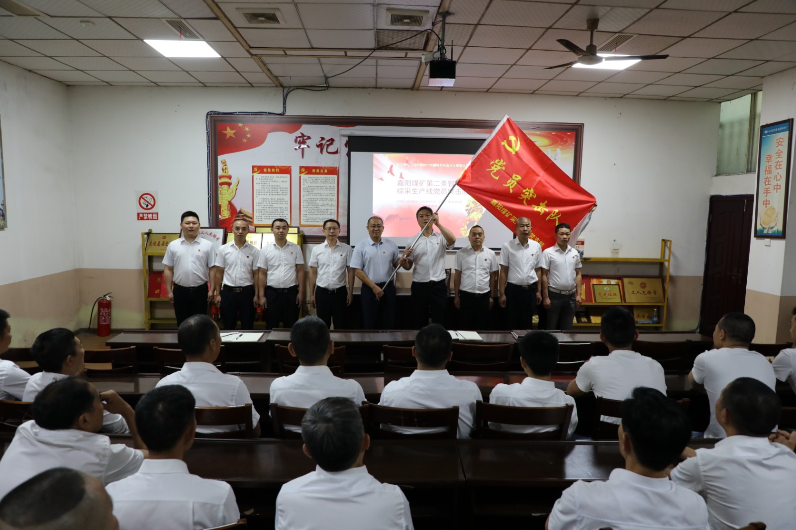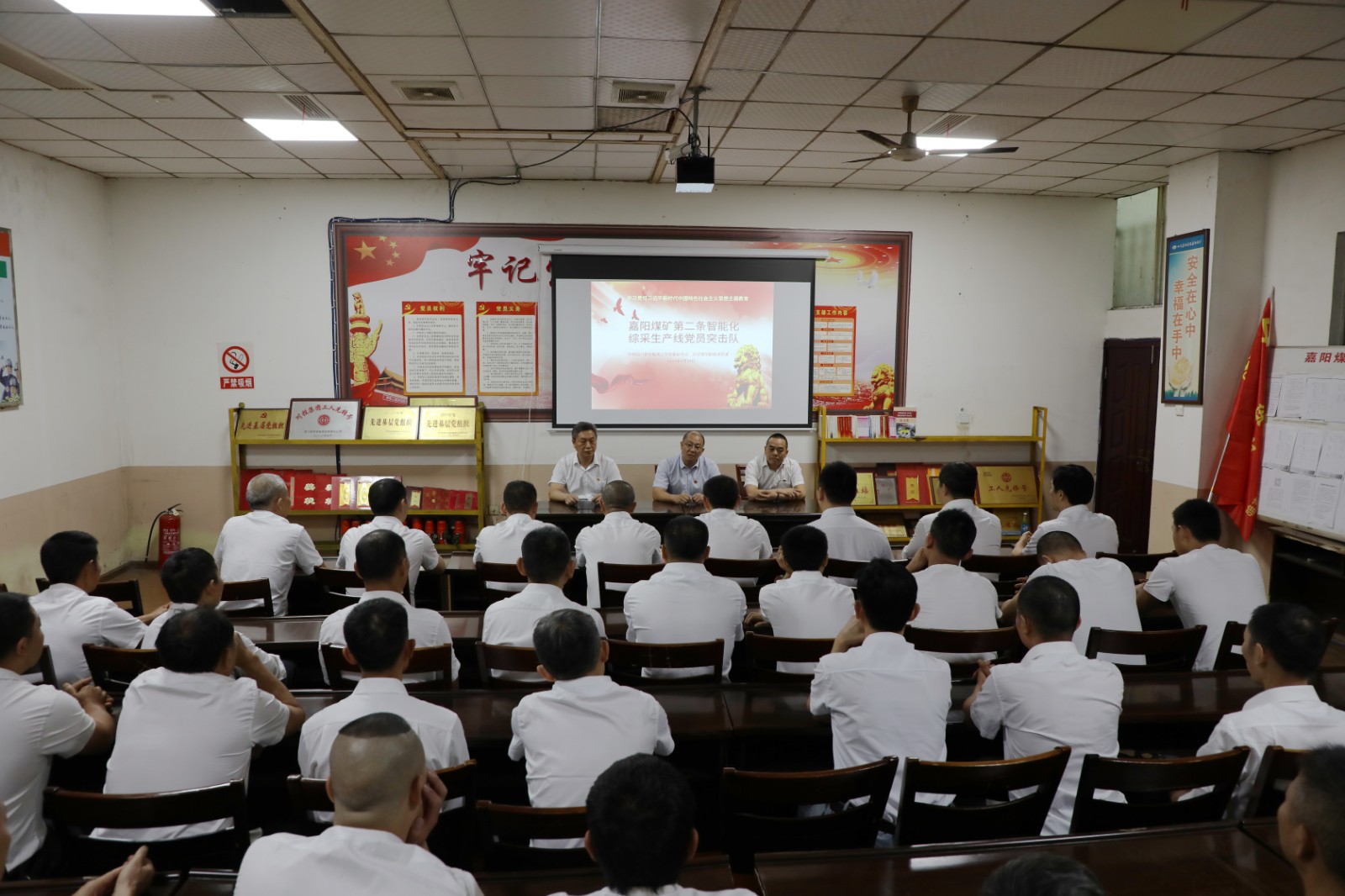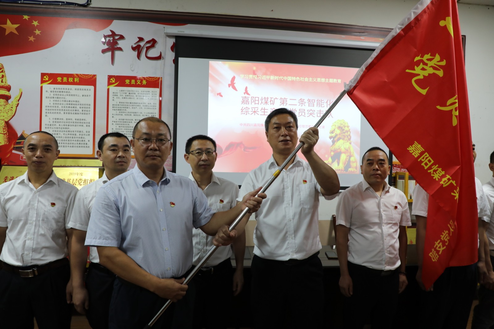 集团公司总经理范勤英到嘉阳煤矿采二队讲主题党课并为党员突击队授旗