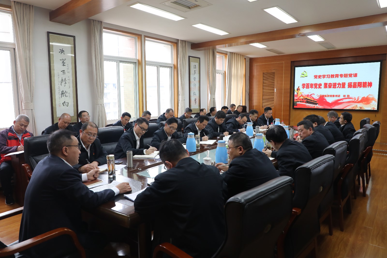 党委书记杜勤同志作了题为《学百年党史 聚奋进力量扬嘉阳精神》的党课宣讲。他以学党史的重大意义和目的为主线,围绕中国共产党取得的伟大成就,讲述了我党从无到有、从弱到强的百年光辉历程,结合几代嘉阳人曲折艰辛的奋进历程激励广大党员守初心、担使命。他要求:一是要深刻认识领悟“为什么学”;二是要准确把握“学什么”“怎么学”;三是要认清形势,通过党史学习教育吸取智慧、凝聚力量,从而提升企业竞争力、创新力、抗风险能力、控制力和影响力。他强调,今年是中国共产党建党一百周年,党中央安排部署在全党开展党史学习教育这是全党今年的一项重要的政治任务,希望各级党员干部要认真贯彻党委工作安排,以党史学习教育为契机,学出绝对的对党忠诚,学出坚定的理想信念,学会辩证思维方式,悟出忧患意识,把学习成果切实转化成工作动力,振奋精神、凝聚力量,以昂扬的斗志投入到企业各项工作中,以优异的业绩向党的100周年华诞献礼。